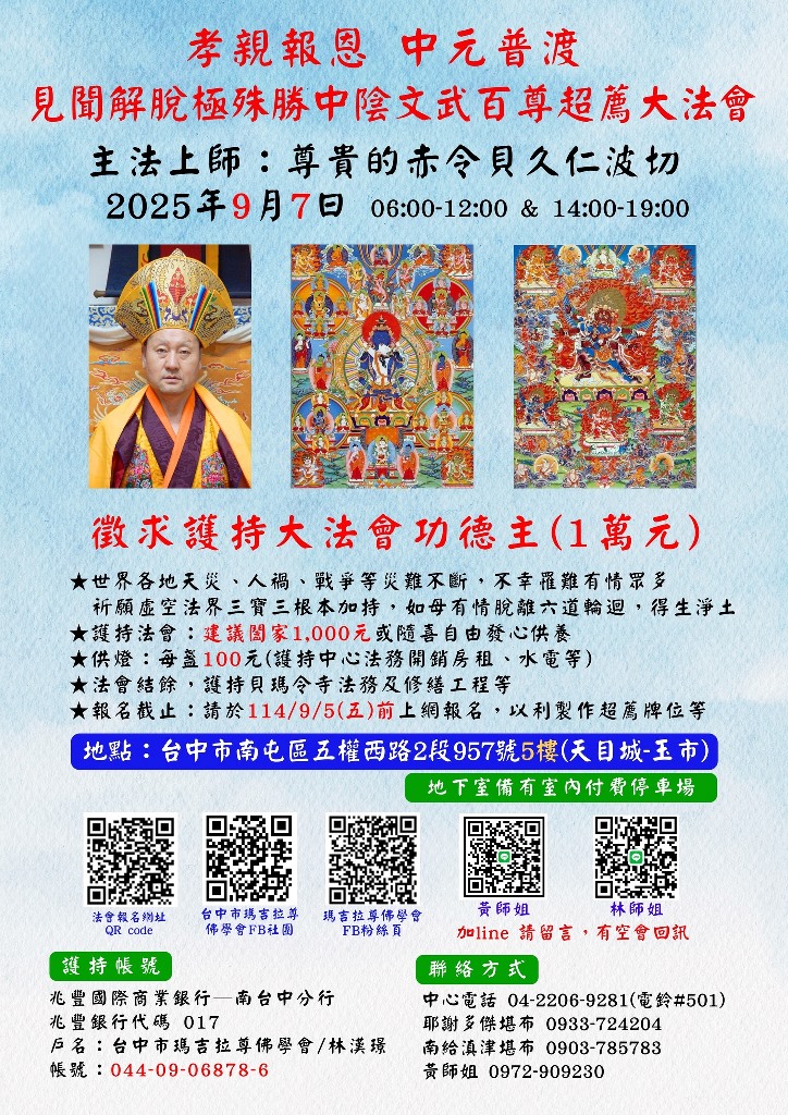 【內容】見即解脫中陰文武百尊超渡祈福法會