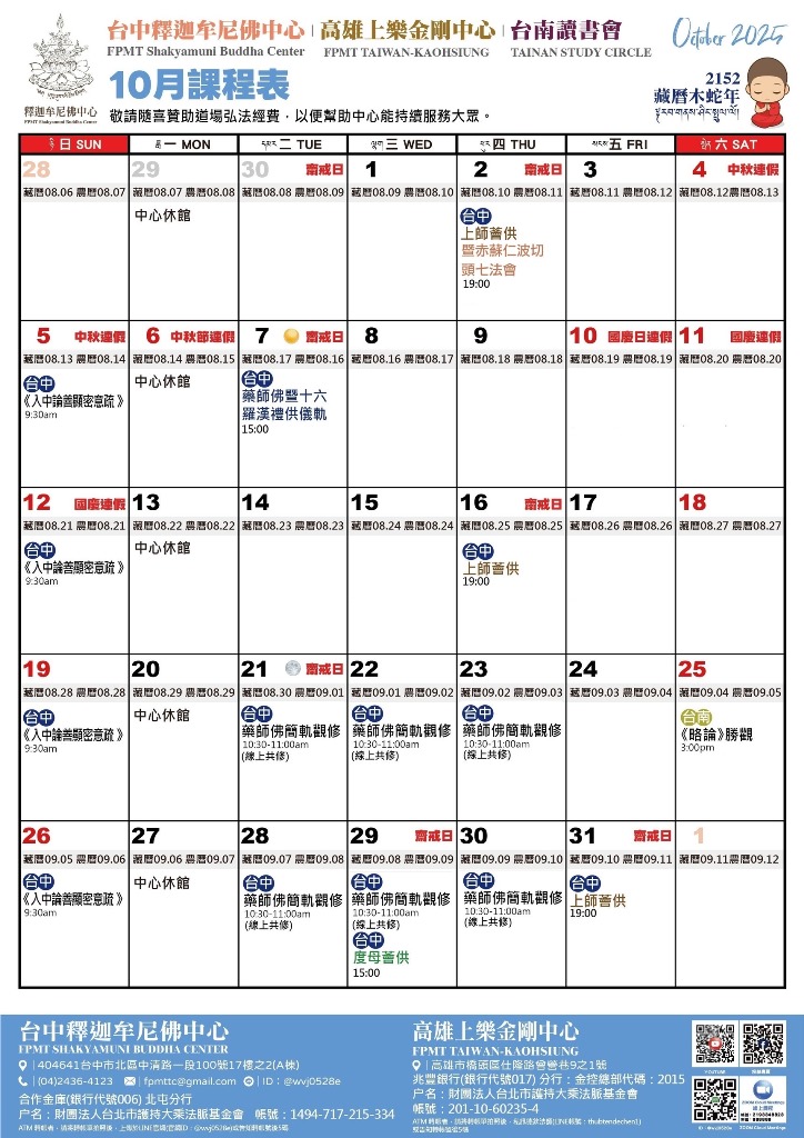 台中釋迦牟尼佛中心 高雄上樂金剛中心 台南讀書會