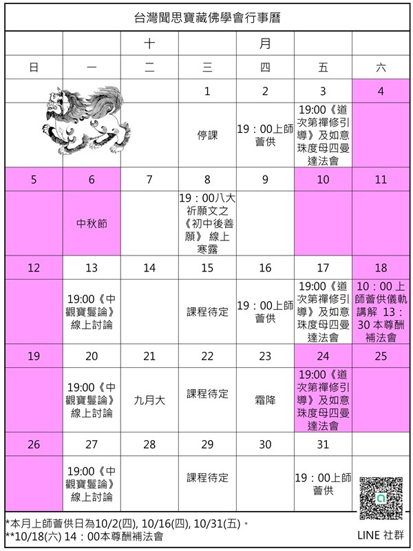 台灣聞思寶藏佛學會2025年10月法訊