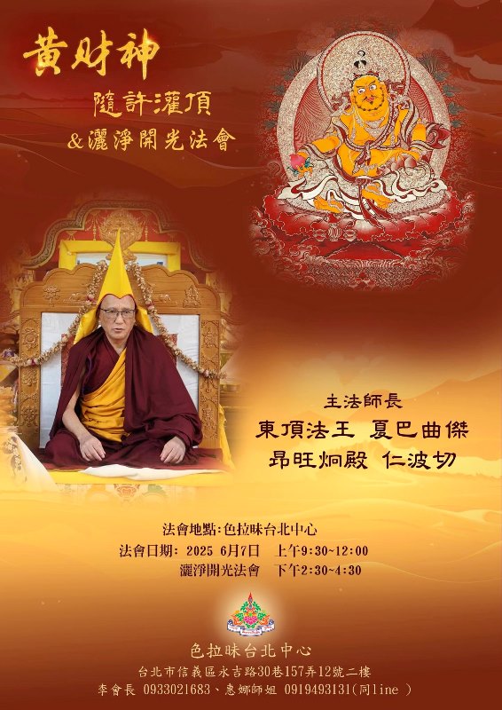 夏巴曲傑昂旺炯殿仁波切 黃財神隨許灌頂&灑淨開光法會