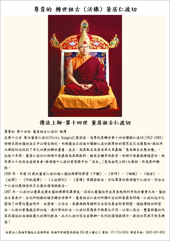 尊貴的 第十四世 董居祖古仁波切 略傳
